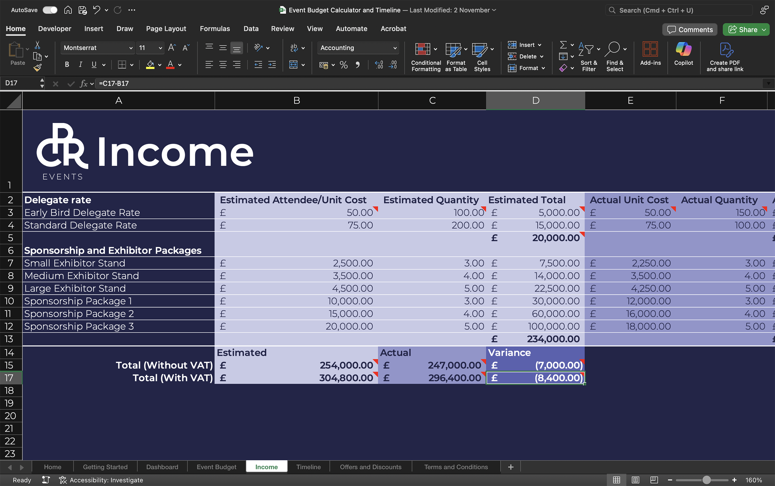 Whether you’re planning a product launch, corporate conference, team building event, or client entertainment, this Master Suite provides the financial control and project coordination tools you need to deliver exceptional events on time and on budget.
