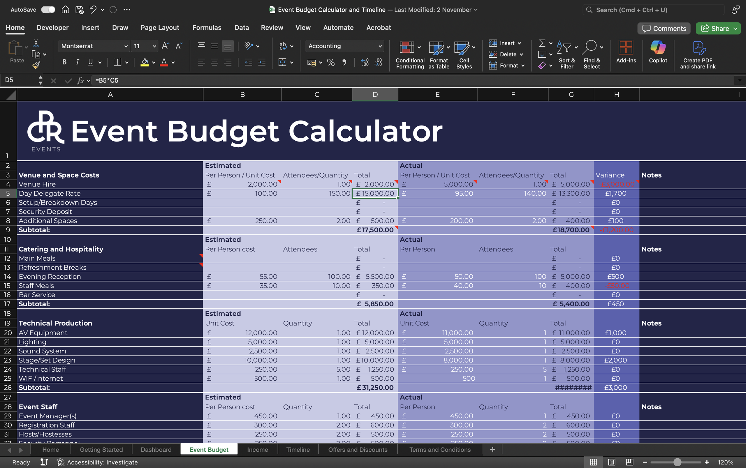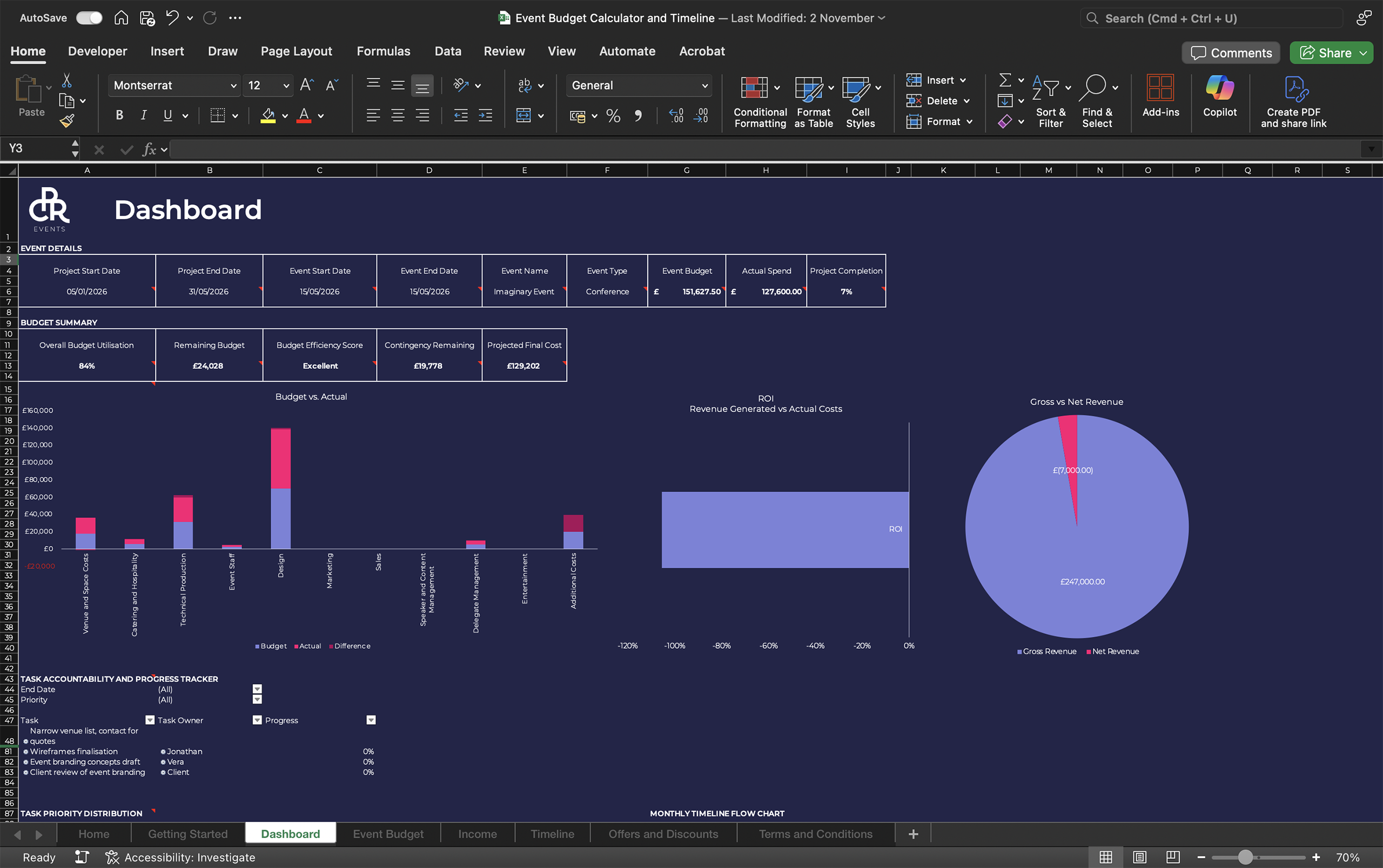 Whether you’re planning a product launch, corporate conference, team building event, or client entertainment, this Master Suite provides the financial control and project coordination tools you need to deliver exceptional events on time and on budget.